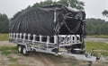 La Mobile Stage 8x6 fait une dimension repliée de 9.8m de long, 2.50m de large et 3.60m de hauteur, ce qui lui permet de se positionner sur des sites ou l’accès est difficile et restreint.